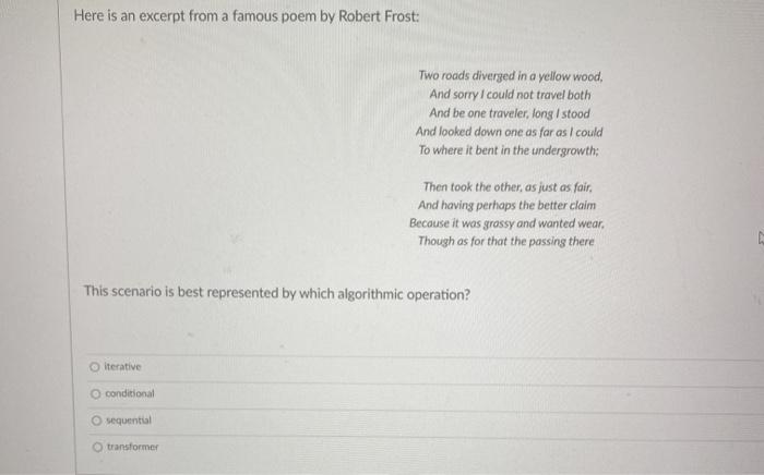 Solved Here Is An Excerpt From A Famous Poem By Robert Chegg Com
